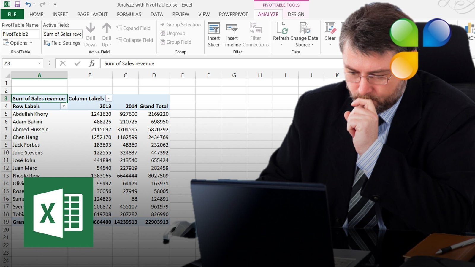 In this video you will learn how to use a PivotTable to analyze data, how to summarize and present your data in an easy way, how to sort and filter your data, and how you can move data around to see it from different perspectives.
